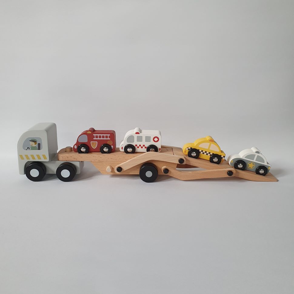 Rij rond met de transporter om zo alle auto’s te verplaatsen, klap de transporter open om de auto’s eraf te laten rijden!