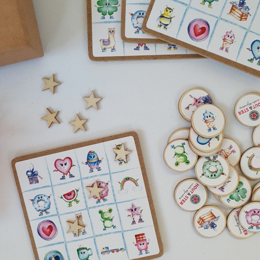 Hét bingospel van Hout & Ster! Superleuk spel, goed voor uren speelplezier voor jong en oud Want het spel is al te spelen vanaf ca. 3 jaar.